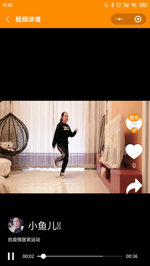 活动自2月26日推出以来,群众积极响应,踊跃报名,目前共有110多人参与活动进行作品投稿,宣传点击量近7万,媒体覆盖人群超过10万人。民众纷纷表达对这种新颖的“云”健身活动的喜爱,全民即使“宅”在家中,也能足不出户感受体育的魅力。
