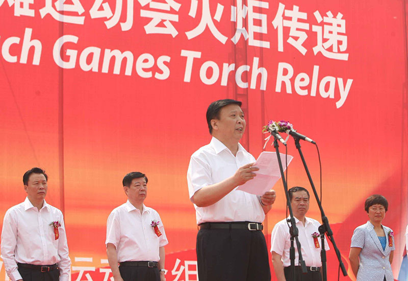 省委书记、省人大常委会主任姜异康宣布第三届亚沙会火炬传递活动开始。省委副书记、省长、第三届亚沙会组委会执行主席姜大明在起跑仪式上致辞。国家体育总局副局长、第三届亚沙会组委会副主席杨树安,省委常委、济南市委书记王敏,省委常委、秘书长雷建国出席起跑仪式,副省长、第三届亚沙会组委会副主席王随莲主持起跑仪式。