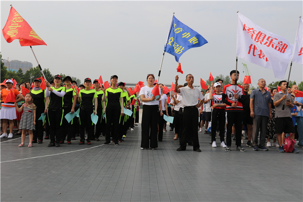 按照中心主题教育工作安排和郑州市迎民族盛会、向不文明行为宣战活动要求,7月16日8点30分,河南省体育中心在南广场举行“不忘初心、牢记使命、同唱《我和我的祖国》”主题党日暨向不文明行为宣战大型倡议活动,全体干部职工及太极拳、广场舞、乒乓球等7支群众健身团体共300余人参加活动。