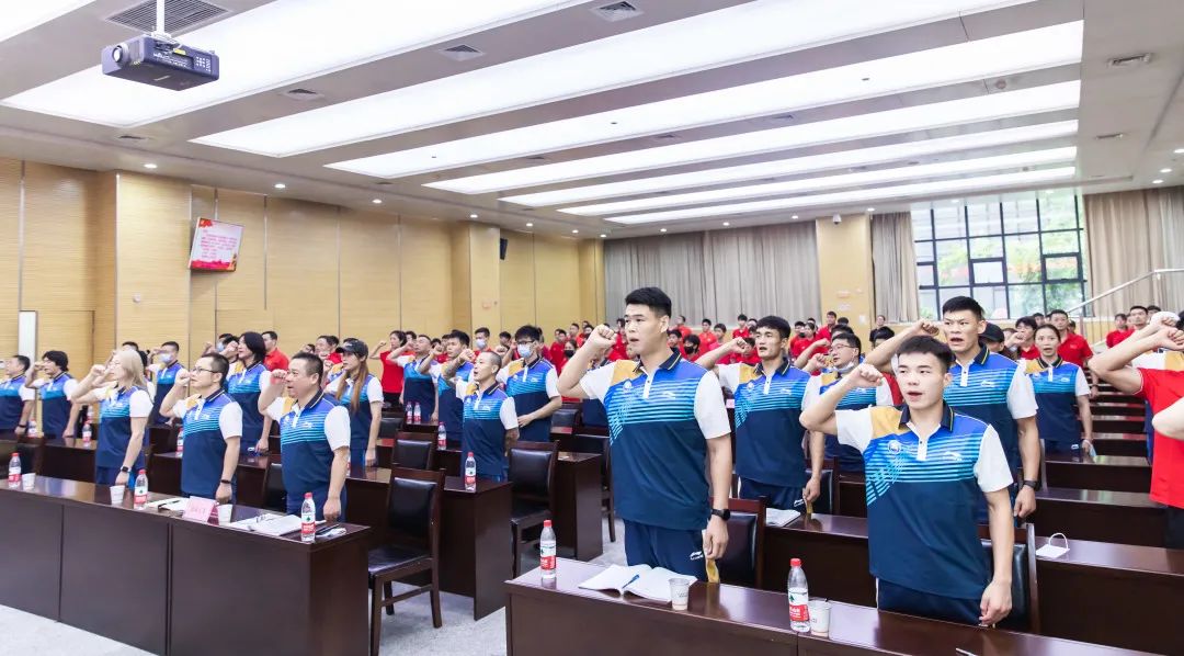 全体参赛队组在会上递交了反兴奋剂、赛风赛纪承诺书,并举行了集体誓师宣誓,坚决圆满完成比赛任务。