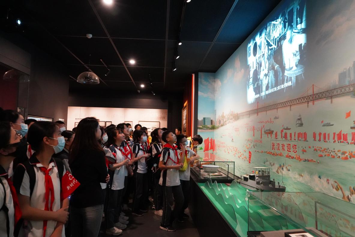 湖北省水果湖第一中学八年级(四)班熠海中队的学生们在班主任张冬梅老师带领下,跟随湖北体育博物馆讲解员的脚步,以时间为轴领略了湖北体育的历史和现在。从古代到近代,从新中国成立到如今。博物馆用丰富翔实的史料、文物和现代高科技的表现手段来追溯湖北体育的发展历程,多角度、全方位展示湖北体育运动的辉煌成就,也让同学们在湖北体育健儿的奋斗历史中感悟青春力量和拼搏精神。