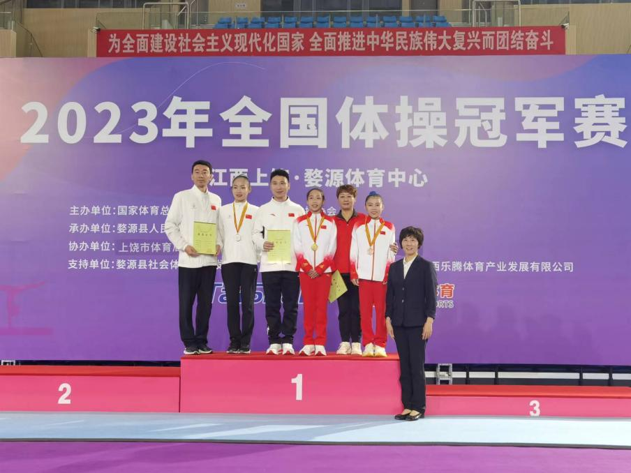 2023年全国体操冠军赛于10月25日-29日在江西婺源举行。作为全国高水平体操赛事,本次比赛共有来自全国各地20支代表队,共计340余人参与,湖北队在本次比赛中共获得1金1银1铜。湖北姑娘陈欣怡在29日下午的女子自由体操单项决赛中,以5.8的全场最高难度分、14.100的总分夺冠。这是她获得的第二枚全国性赛事金牌——上一枚金牌是2022年全国体操冠军赛自由体操项目金牌。