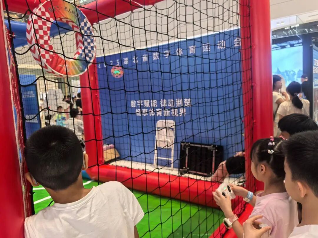 小朋友体验无人机足球。