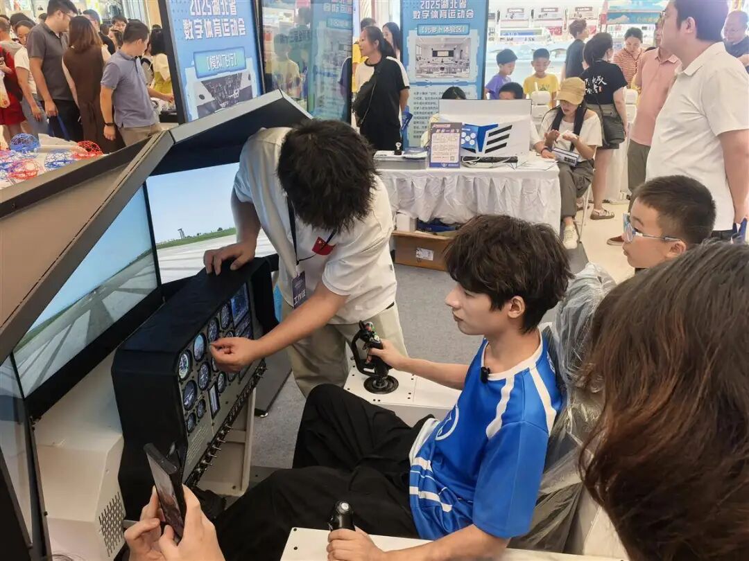 来自武汉的职业电竞明星选手eStarPro.橘子在现场体验了模拟飞行项目,他说:“数字技术与体育的创新融合,打破了传统体育的围墙,更打破了‘竞技体育只有少数人参与’的局限。”