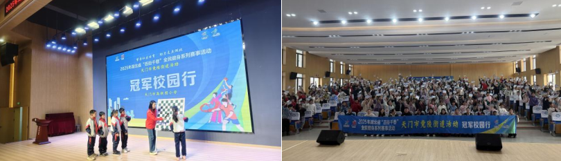 赛场之外,系列活动进一步拓展了“体育+”的融合维度。“冠军校园行”特邀国际跳棋女子国际特级大师赵汗青先后走进天门市万林实验小学、高新园小学和第一初级中学,与近千名学子面对面交流,分享竞技故事与体育精神。在高新园小学活动现场,五年级的罗奕阳同学激动地表示:“今天见到国际跳棋冠军真的太激动啦,手心都有点小冒汗呢!冠军讲的翻盘对局故事超精彩,尤其是那种沉着思考、步步为营的感觉,我听得眼睛都离不开舞台!以后我也要学习国际跳棋,争取像冠军一样厉害,说不定还能和小伙伴们一起参加比赛呢!”