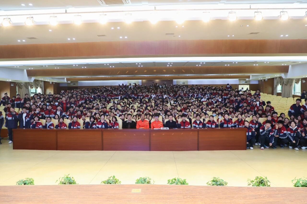 互动问答时,现场同学们踊跃举手,围绕“怎么在低谷中坚持过来?”“如何找到自己真正热爱的事情?”“比赛前紧张该如何调节?”等问题,陈柏良逐一耐心解答。他说:“热爱是最好的动力,发现你自己的特长和优点,然后坚持到底。”陈柏良寄语同学们:“希望大家多参与体育运动,遇到挫折要及时调整心态。明确目标,坚守初心,一直走下去!”