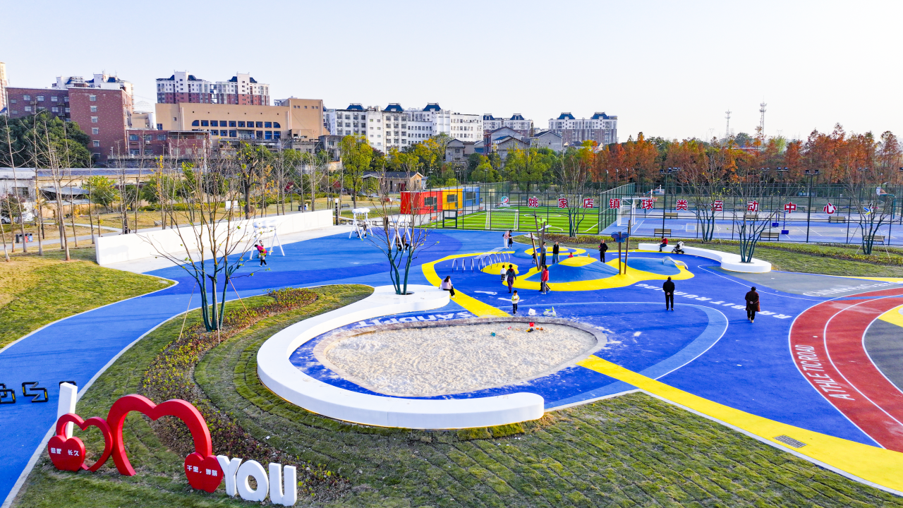 项目通过系统性升级改造原有公园空间,科学划分儿童游乐区与球类运动区两大核心板块,打造出适配全年龄段市民多样化需求的综合性户外活力空间。儿童游乐区以“云端蝶舞”为设计核心,打破传统游乐设施的刻板布局,将自然美学与童趣体验深度交融。区内错落分布着秋千、沙池、童趣滑梯、立体攀爬架等多元游乐设施,搭配模拟天际线的环形跑道、弧形休憩坐凳与云朵造型装饰,营造出梦幻沉浸式亲子互动氛围。运动区紧扣全民健身需求,以“笼式安全设计+多功能适配”为核心,打造五人制笼式足球场、笼式多功能球场(可切换篮球、羽毛球等运动)、笼式篮球场、乒乓球场及综合健身区五大专业运动空间,实现全龄覆盖、多元适配。同时,运动场配套3座集装箱式服务用房,提供储物、零售等便民服务;沿场地合理布设休憩坐凳,方便市民运动间隙休憩交流。