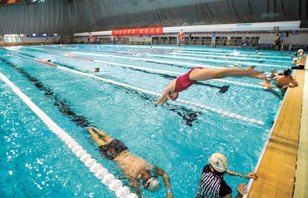 市民在洪山体育中心英东游泳馆畅游