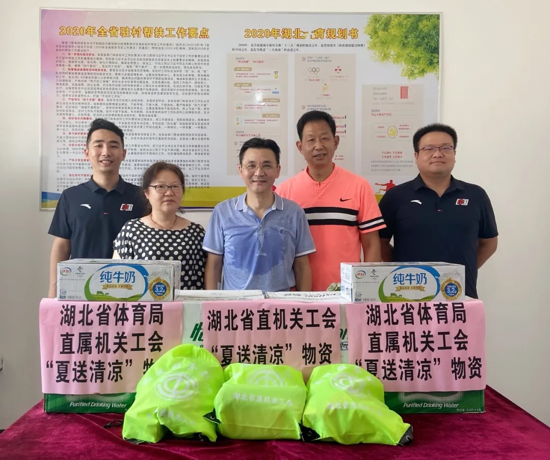 8月13日,烈日炎炎,酷暑难耐。省体育局党组成员、副局长水兵一行走进襄阳市襄州区伙牌镇王湖冲村走访困难群众,调研扶贫产业发展情况,代表省直机关工会和局机关工会对驻村工作队进行了慰问并送上“清凉”。