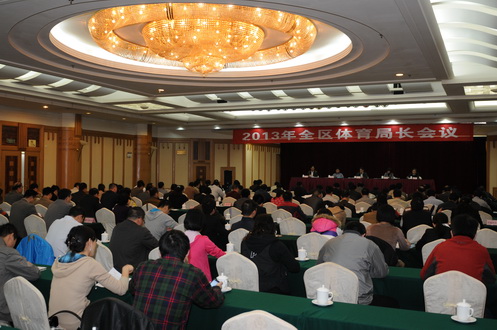 广西壮族自治区体育局党组书记、局长容小宁在会上总结了五年来广西体育发展取得的成就,回顾了2012年体育工作,对2013年体育工作作了部署。五年来,全区体育战线认真落实各项部署,体育事业发展取得了显著成绩。群众体育蓬勃发展,贯彻落实《全民健身条例》,推动各级政府依法履行公共体育服务职责,自治区、14个市、63%县(市、区)出台了本级的《全民健身实施计划》,大部分地区实现了六纳入。竞技体育水平不断提升,广西运动员在国内外重大比赛中共获得世界冠军29个、亚洲冠军40个、全国冠军246个,8人8次打破世界纪录,7人7次打破全国纪录。体育基础设施得到改善,以中国(广西)红水河流域民族体育健身工程、中越边境(广西)全民健身工程等特色工程为龙头,不断推进市、县、乡镇、村四级基本公共体育设施建设。全社会体育固定资产累计投资105亿元,兴建了一大批城乡体育基础设施。截止2012年底,7650个行政村建有篮球场,占总数的53.3%,提前三年完成行政村建设篮球场地的“十二五”规划任务。以村级篮球场的建设带动了村级公共服务中心的建设。