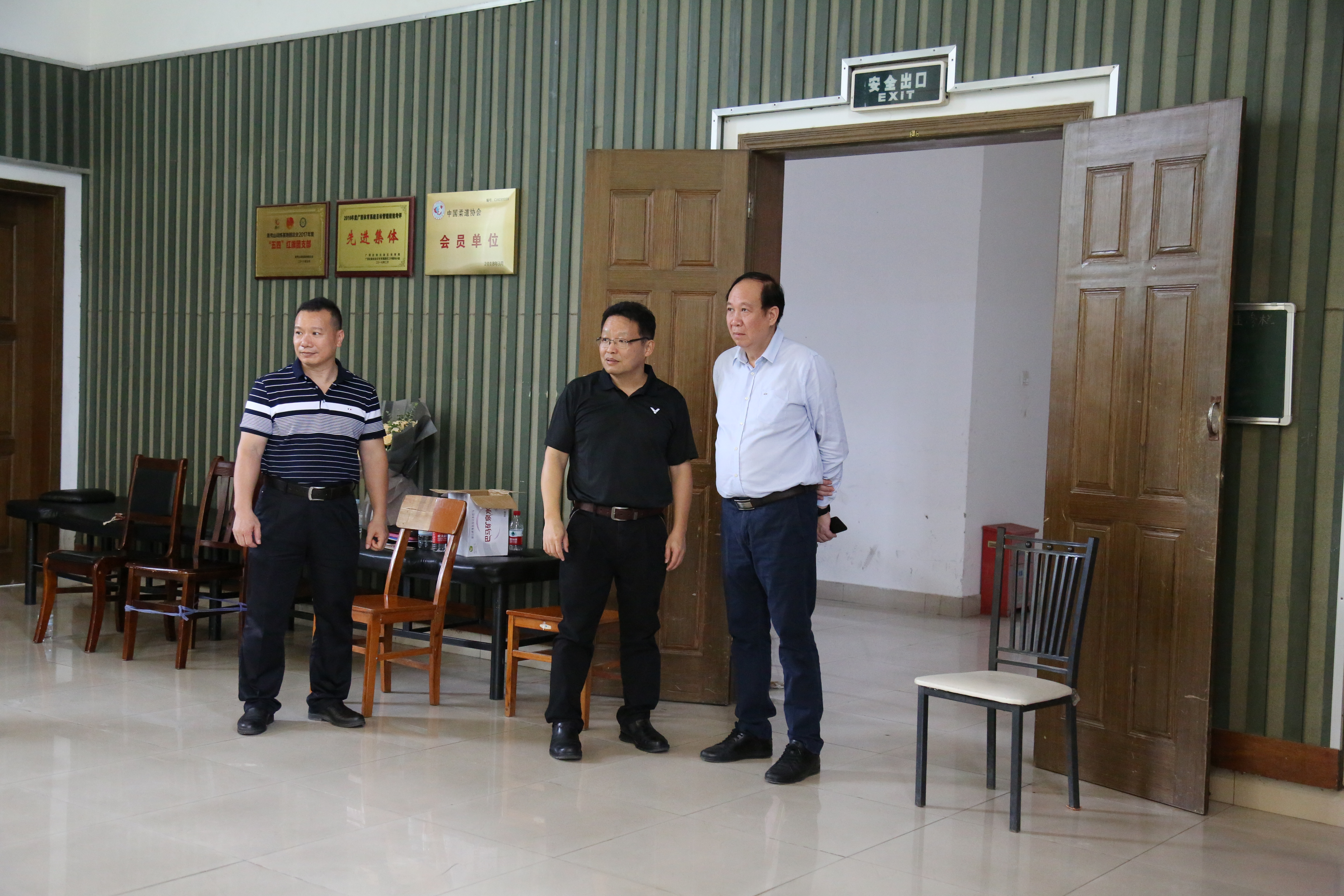 山本教练昨天抵达南宁,稍作休整后今天立即到广西柔道队开展相关工作。在柔道馆里,广西重竞技中心领导班子和柔道队全体教练员、运动员举行了简短的欢迎仪式,中心主任陈卫对山本教练的到来表示真挚的欢迎,希望柔道队把握机会认真学习,尽快提高技战术水平。欢迎仪式结束后,山本教练立马投入实践训练,与队员们亲自切磋,耐心且详细地讲解各技战术的要点以及运动员训练中存在的不足。今天室外气温虽然不高,可训练场馆还是比较闷热,这对于初次体验没有空调场馆的山本教练来说也是个挑战,但是为了尽快了解每个队员的具体情况,整个上午的训练课他都很少休息,抓紧时间和队员们一一比试、交流。自治区体育局党组副书记、副局长谢强也亲自来到场馆看望山本教练训练情况。