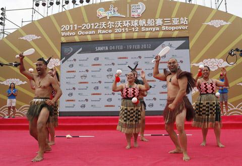 启航交接仪式上,除了海南民族特色的竹竿舞表演,来自新西兰的著名表演艺术团“毛利团队”也带来了地道的毛利族战舞(Kapa haka)歌舞表演,六名表演者身着传统毛利服饰表演了迎宾仪式,热情演唱了毛利歌曲,并舞出了振奋人心的毛利战舞,让全球最优秀的环球帆船队员以及现场观众享受了一次别开生面的助兴演出。