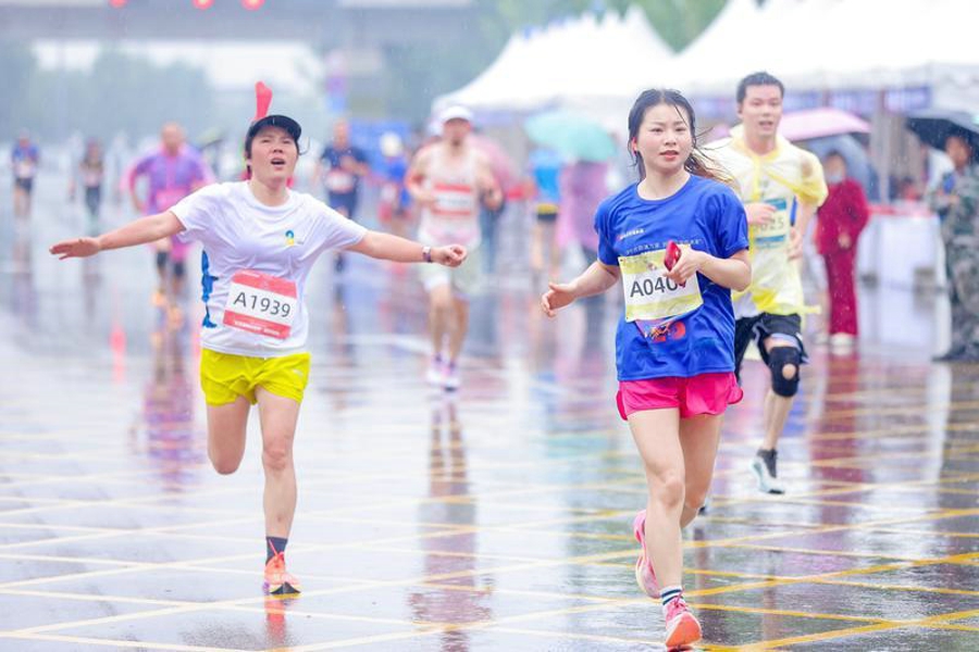 来自咸阳的陈忙乐和姚晓庆是一对热爱运动的中年夫妻,“今天用时51分,跑出了我们有史以来最好的成绩,现场热情的加油呐喊声给了我们满满的活力和动力。”