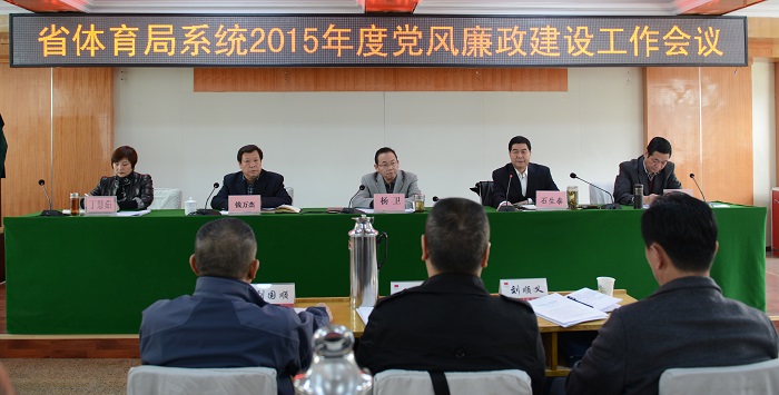 甘肃省体育局党组书记、局长杨卫作了题为《增强政治意识 强化责任担当 不断推进系统党风廉政建设》重要讲话,省纪委驻省体育局纪检组组长钱万杰作了题为《落实从严治党要求 强化监督执纪问责》的工作报告,省体育局党组成员、副局长刘新平传达了中纪委十八届五次全会精神和省纪委十二届四次全会精神。