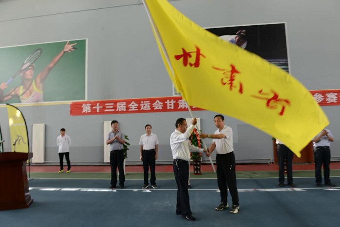 2017年7月31日,第十三届全运会甘肃省代表团授旗仪式暨参赛动员大会召开,代表团团长、省政府副省长、省政协副主席郝远向代表团授旗,代表团副团长、省政府副秘书长俞建宁讲话,代表团副团长、省体育局副局长刘新平汇报甘肃代表团备战情况,武术运动员常志昭代表运动员发言。省体育局副局长钱万杰、丁慧茹、王克平,省安监局纪检组长赵磊,省委宣传部、省财政厅等代表团成员,省体育局系统副处以上干部和局机关全体干部,及进入决赛的运动员、教练员、新闻媒体记者共200余人参加。大会由代表团副团长、省体育局局长杨卫主持。