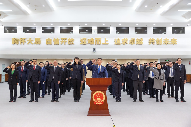 根据宪法宣誓制度的有关要求和《国家体育总局党组任命的干部宪法宣誓实施办法》,2月21日,国家体育总局举行总局党组新任命的干部宪法宣誓仪式。国家体育总局局长、党组书记高志丹监誓,办公厅主任徐翔鸿主持宣誓仪式,体育总局系统37个部门和单位的55名党组新任命干部依法进行宪法宣誓。