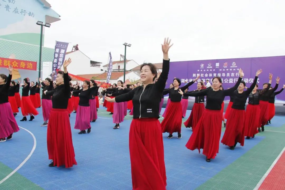 “请大家把握好手指弹动、手掌拍打、手背甩打、手臂摆打的力度和节奏......”5月6日,2023年湖北省社会体育指导员公益行启动仪式在孝感市孝南区朋兴乡建光村举行,来自孝感市区的手拍鼓、体育模特、广场舞爱好者和当地村民500余人参加了本次活动。