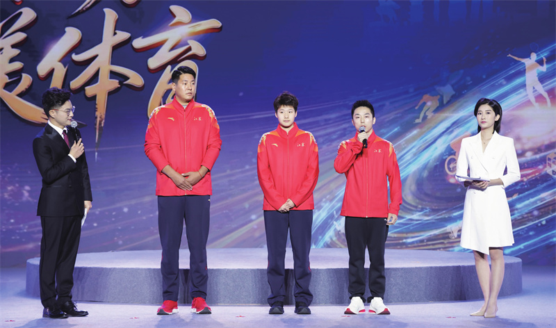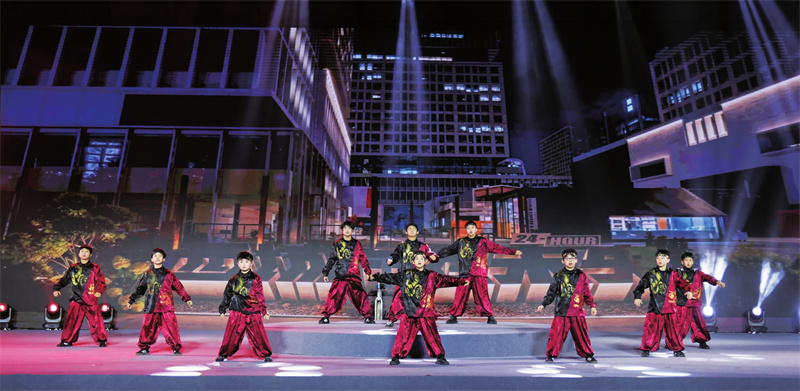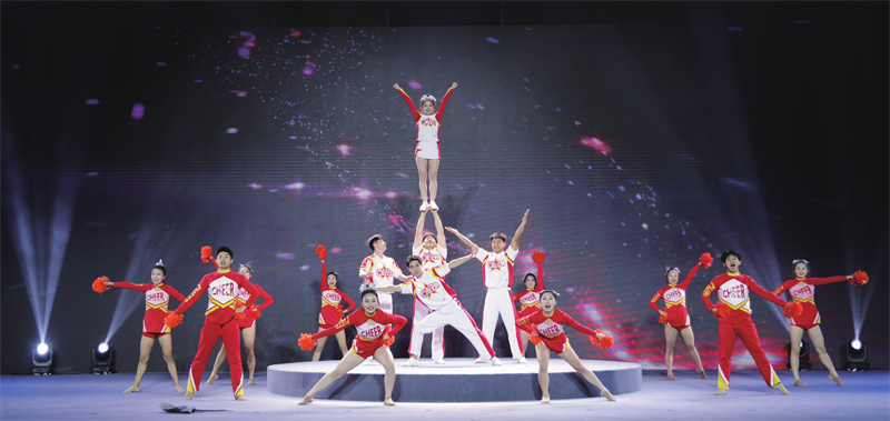 活动开场,第十五届全运会体操冠军尤浩、游泳冠军吕沁遥、赛艇冠军臧哈闪耀亮相,回顾了他们的全运会荣耀时刻与奋斗历程,真挚的分享迅速点燃了现场观众的热情。《看!这是我们的赛场》把“魅力江苏 最美体育”的精彩赛场搬上舞台,体育舞蹈、跆拳道、武术、魔方、石锁、搏击等项目团队轮番炫技,生动再现了群众赛事活动中全民参与的火热场面。《体育的烟火气》则以体育博主的视角游遍江苏,在商圈、景区、街区等城市场景中,广场舞阿姨翩翩起舞,轮滑小将疾风般掠过,街舞少年高燃对决,舞龙舞狮腾跃生风……人们在城市的各个角落乐享运动生活,共同描绘出“处处可健身、人人爱运动”的活力画卷。《逐梦者的力量》通过感人的情景剧,深情讲述了江苏技巧队艰苦训练的故事,传递了一代代江苏体育人坚守梦想、奋勇拼搏、为国争光的精神力量。