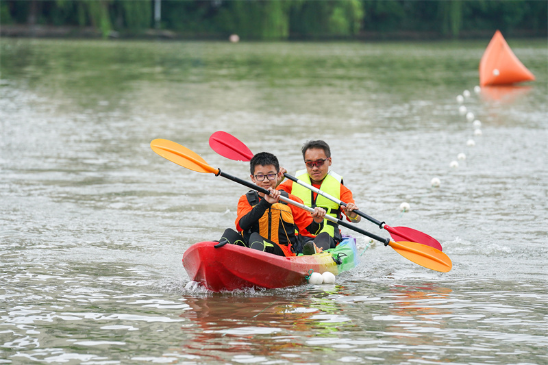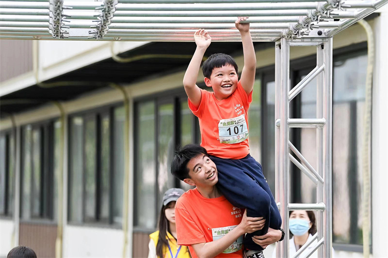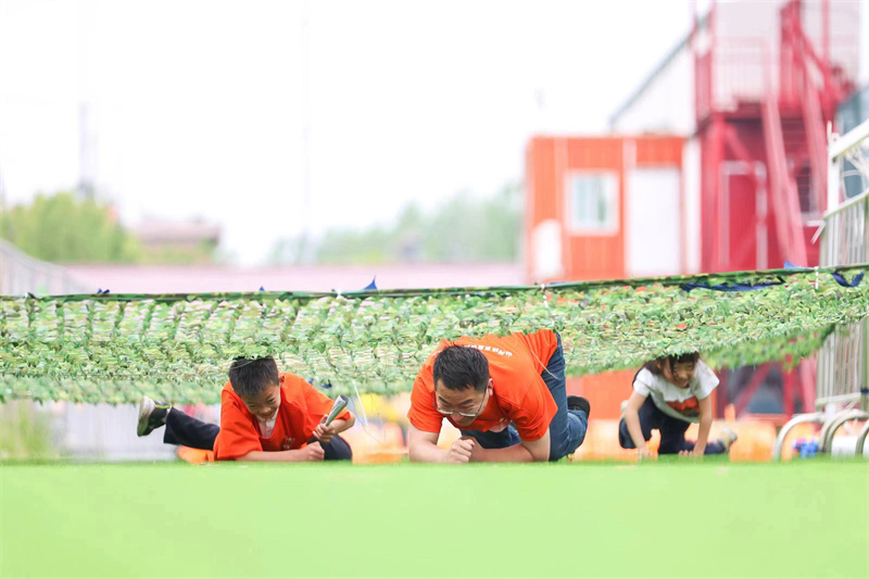 水面上,皮划艇奋勇向前,桨板激起的层层浪花与孩子灿烂的笑容交相辉映,而岸边的家庭早已摩拳擦掌跃跃欲试。陆地上,翻滚轮胎、千米追逐、匍匐前进需要全员完成,不仅考验参赛家庭的耐力和技术,更考验家庭成员间的协作性。翻山越岭、空中接力和直击云霄均为“高空作业”,力量和速度的比拼、智慧与体力的较量,爸爸托着孩子,妈妈呐喊助威,现场的氛围热辣滚烫。
