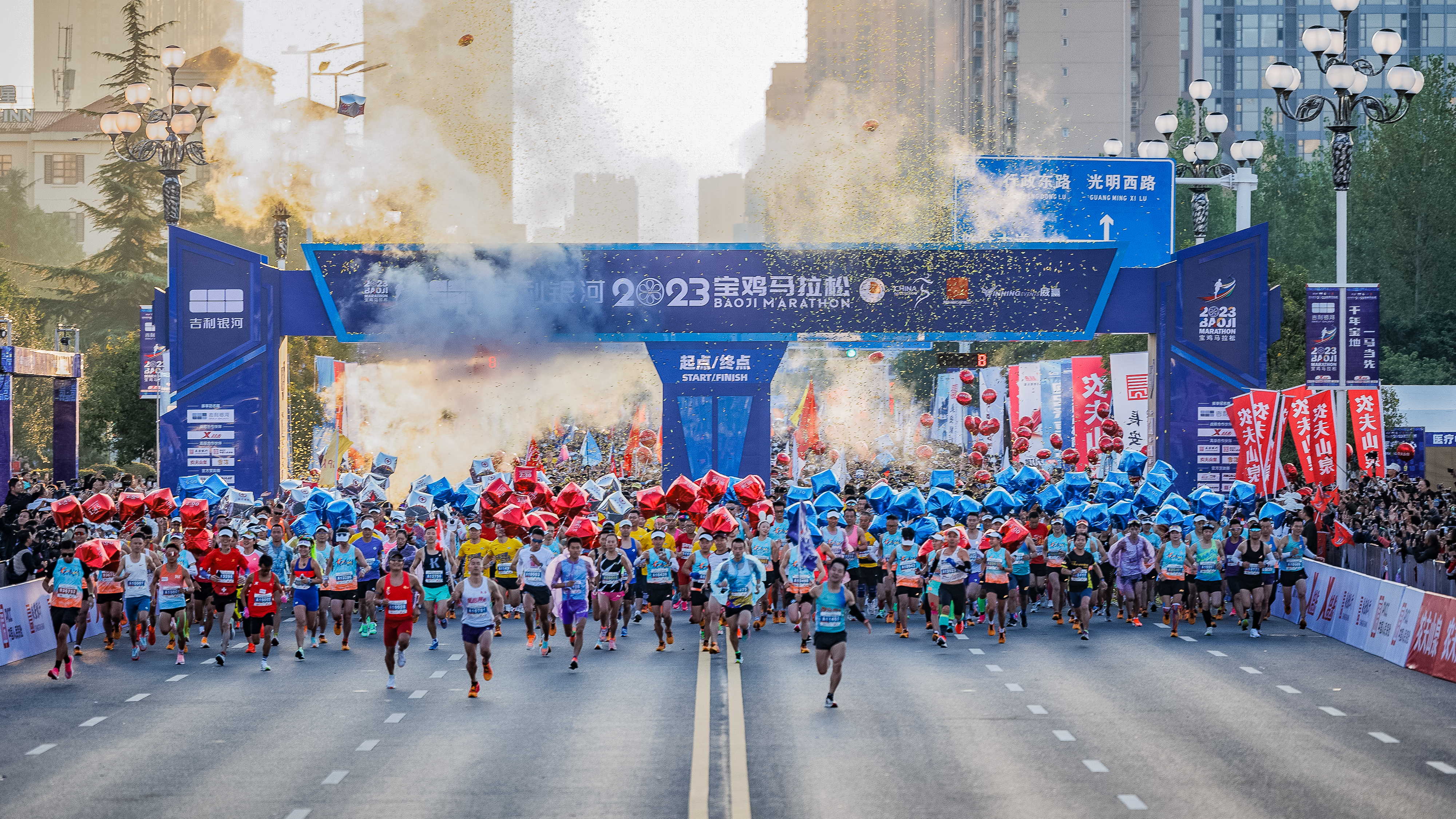 10月15日,吉利银河·2023宝鸡马拉松在陕西省宝鸡市开跑。这是宝鸡市首次举办城市马拉松赛事。共有2万人参赛,其中包括5000名马拉松选手、8000名半程马拉松选手,以及7000名欢乐跑者。