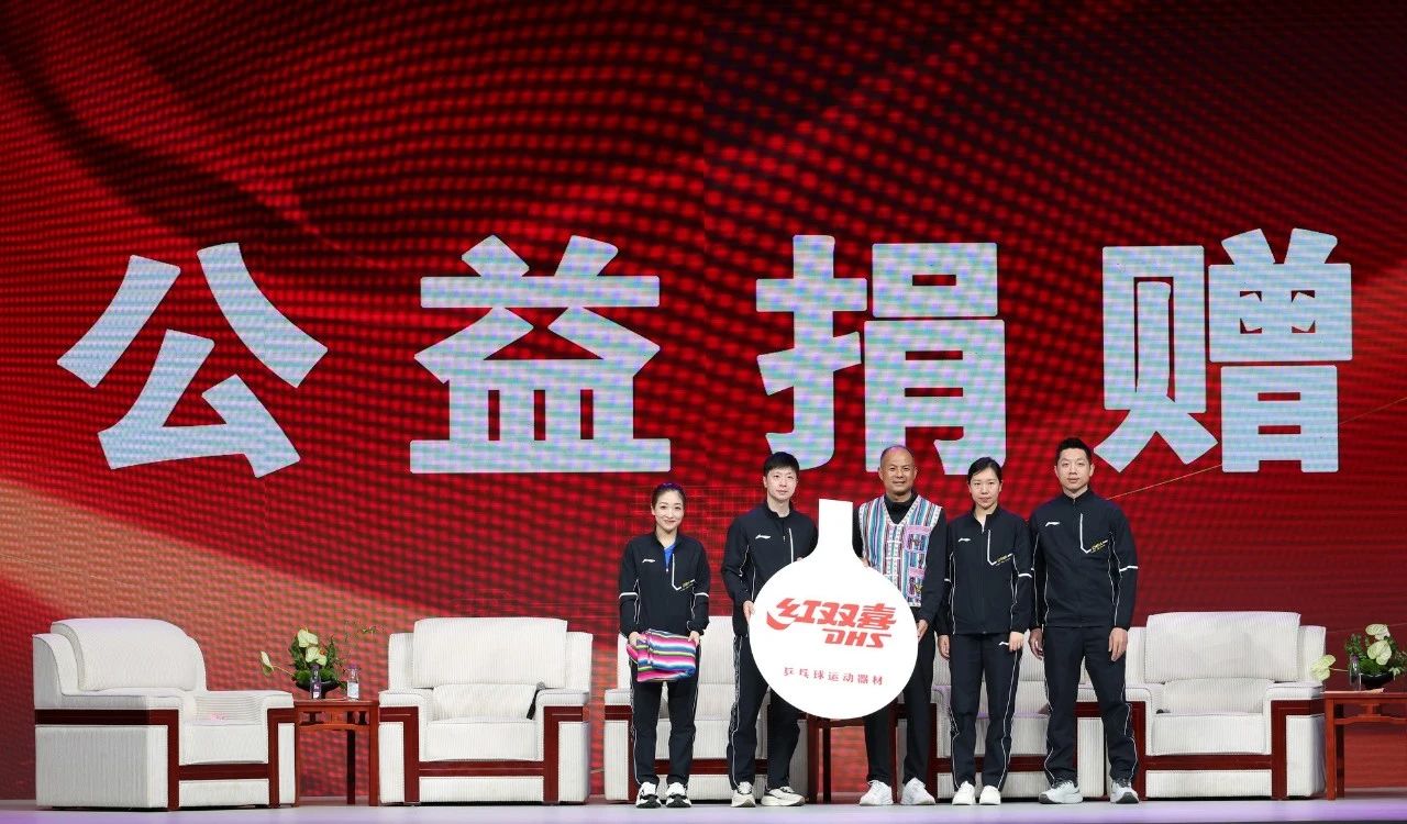 交流之后,四位奥运冠军先后与来自北大、清华、南开和云南师大的同学组成的西南联合乒乓球队和乒乓爱好者进行互动。奥运冠军精湛的球技和富有亲和力的表现引得现场师生阵阵欢呼。值得一提的是,四位冠军代表中国乒协、国家乒乓球队和红双喜公司向云南省浸润计划帮扶点独龙江捐赠了体育器材。