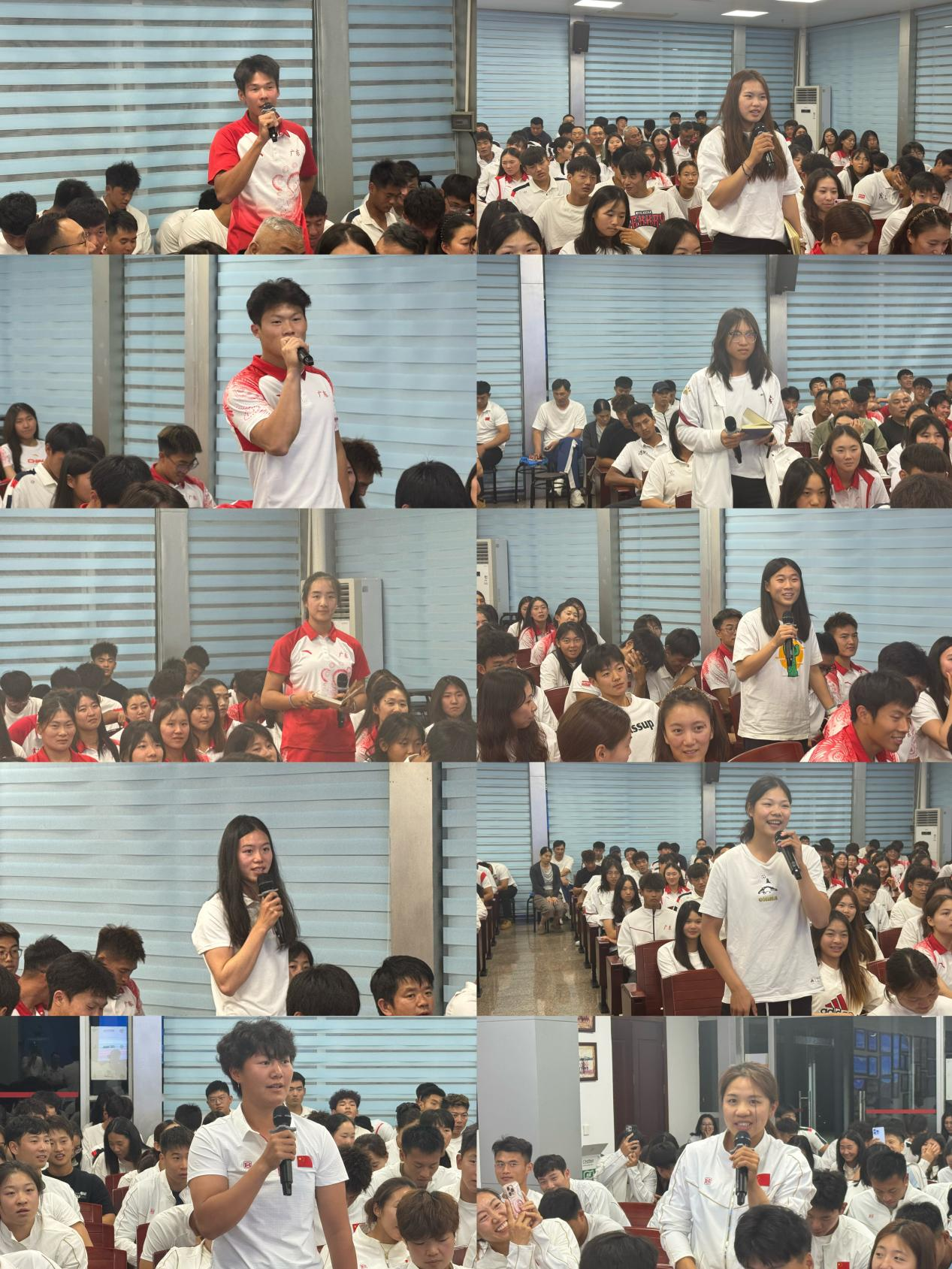 孙梦雅分享了两届奥运卫冕、从伤病低谷到逆袭夺冠的坚守,诠释“以桨为翼,可破风浪”的信念;季博文讲述亚运会失利到巴黎奥运夺冠的蜕变,传递“训练不会骗人,每一桨都算数”的执着;林文君强调站上国际赛场代表的是中国,要心怀家国、肩扛责任,把坚持落到每一天;帅常文讲述十余年与船为伴、与桨为伍的坚守,分享日复一日重复划桨、突破瓶颈、顶住压力的赛场定力;王楠回顾四次关键转折,展现自己通过思想的升华和训练场的坚守,不断实现突破的拼搏历程;于岳斌以初心坚守、挫折成长为主题,分享十年如一日的坚持与自律;殷梦蝶从坚守初心、敬畏坚持、正视挫折、严于律己、心怀感恩五个方面,讲述汗水与坚守的意义。