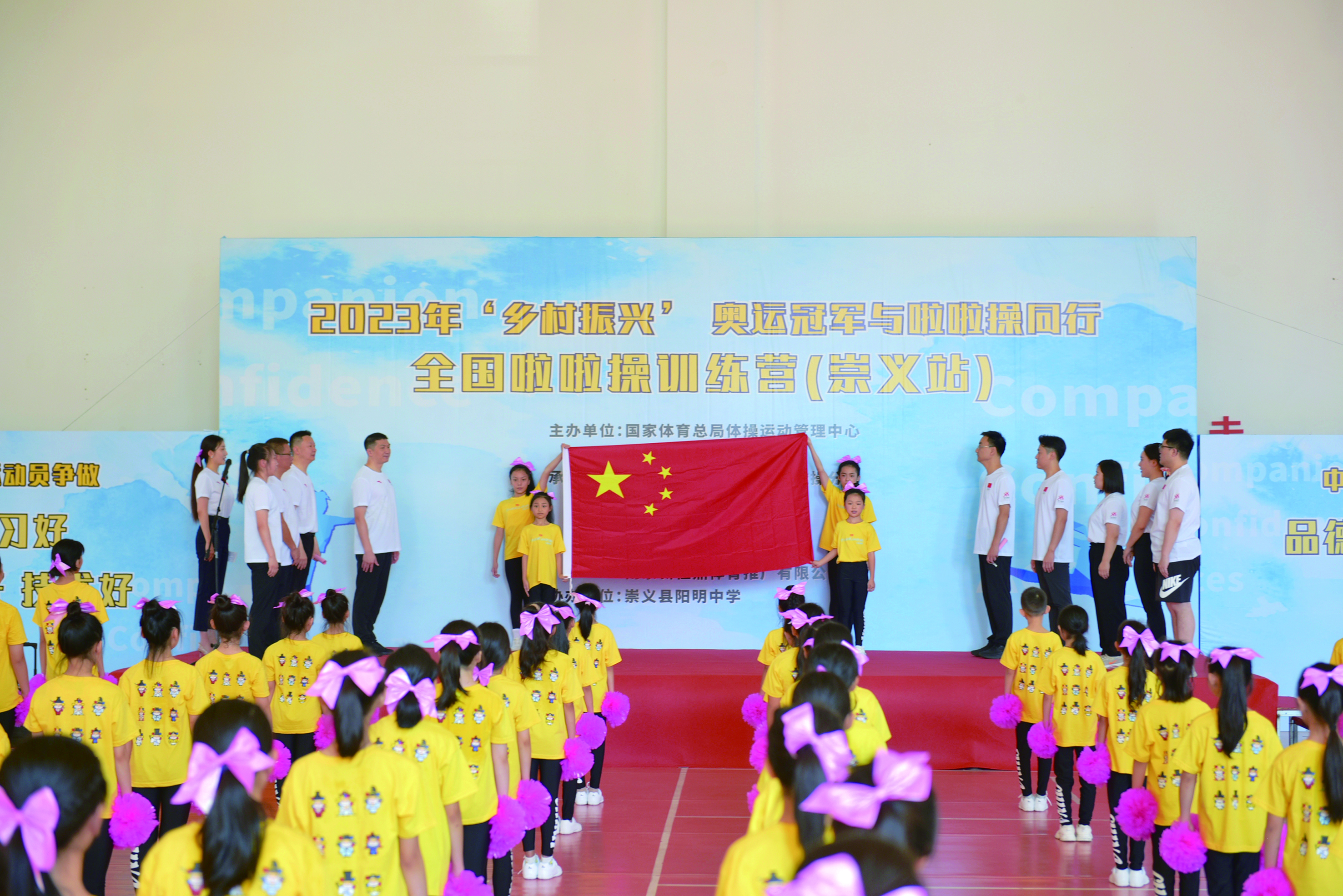 2023年“乡村振兴”奥运冠军与啦啦操同行——全国啦啦操训练营近日在江西省崇义县开营,共吸引了来自全国各地的150余名中小学生和教师参加。