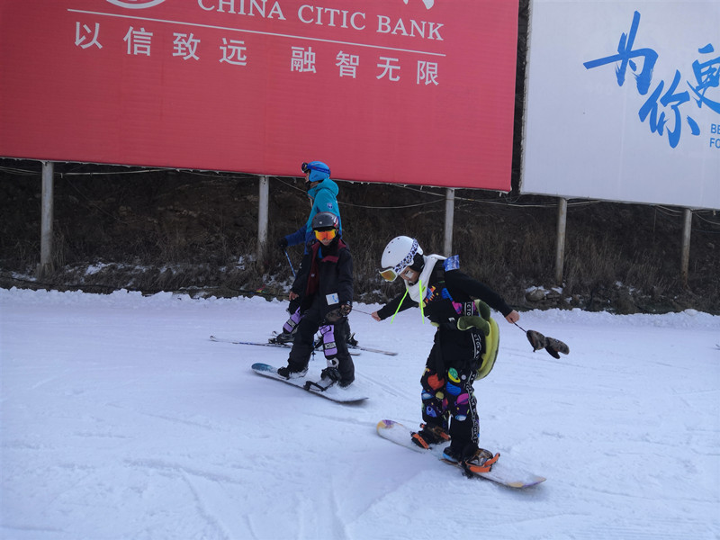 在河北张家口万龙雪场记者就遇到了正在滑雪的小雨和典典,他们戴着全套的定制雪具,对单板运用自如,虽然两个人只有8岁,但一看就是滑雪场上的“老人”了。“我们俩从两三岁就开始一起滑雪,”小雨自豪地说,“因为我们的妈妈是闺蜜,她们喜欢滑雪,所以一到雪季,就会带着我们俩一起来滑。今年妈妈正在教我们双板,希望能学会。”