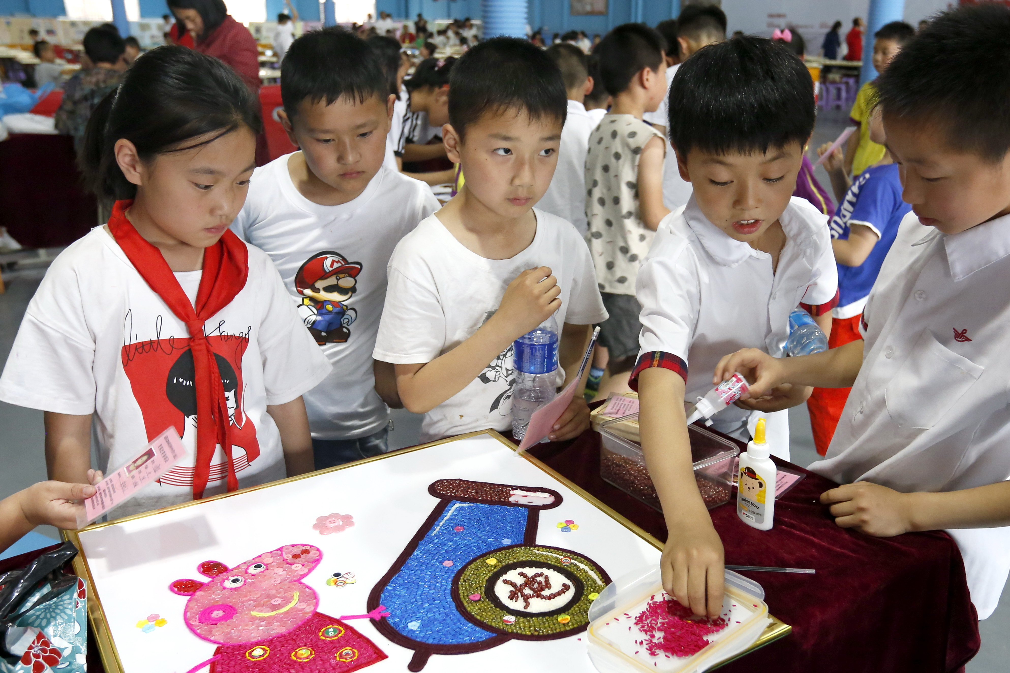 孩子们体验象棋五谷画的制作 |