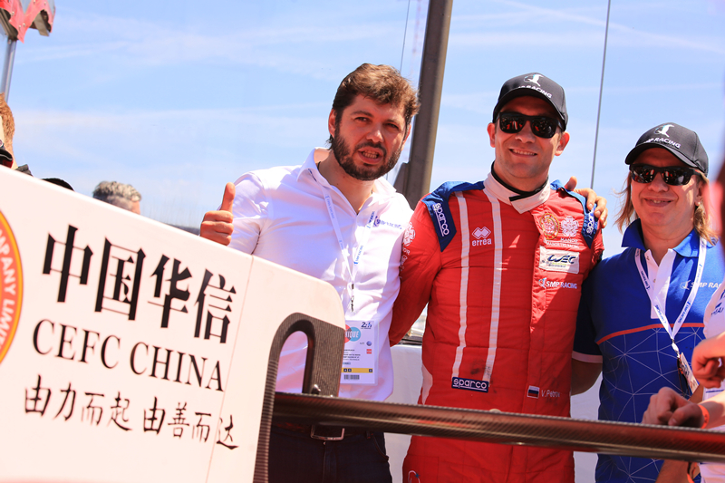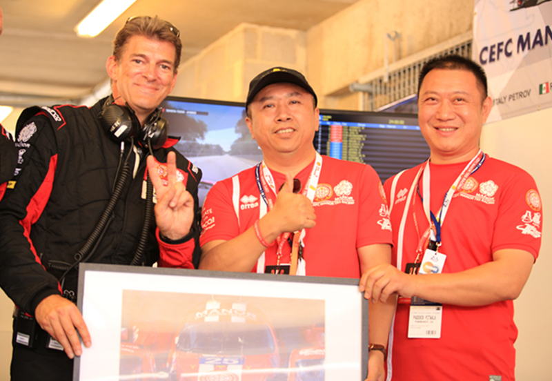 ![]() 苏卫忠与中国华信·马诺·极赋车队经理合影 |