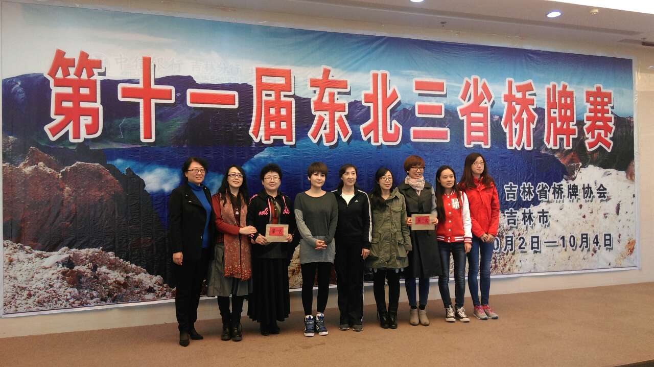 女子组比赛采用双循环制,经过10轮角逐,吉林鼎元女队夺得冠军,辽宁女子二队获得第二名。辽宁省获得团体总成绩冠军。吉林省桥牌协会主席为比赛设立了幸运奖,沈阳圣雨田、大连地产、大庆星翰、大庆田园女队、吉林森工、吉林广电分别获得幸运奖。吉林省棋牌运动管理中心主任顾健、吉林省桥牌协会主席金占杰、辽宁省桥牌协会主席刘忠环、哈尔滨冰雪桥牌俱乐部主席黄晓雅为获奖运动队颁奖。