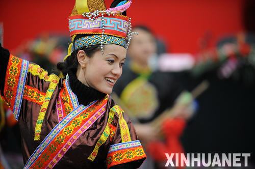 1月18日,身着少数民族服装的演员在现场表演舞蹈。当日,第九届全国少数民族传统体育运动会倒计时600天活动在贵阳市正式启动。新华社记者刘续摄