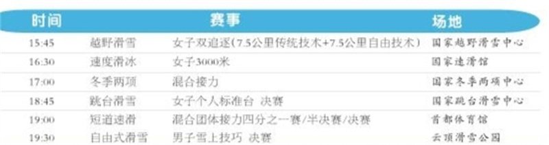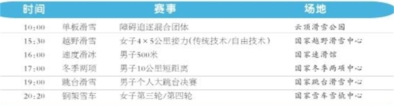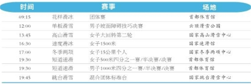 赛程内容来源于《北京2022年冬奥会竞赛日程 第十二版》(转自2月4日《中国体育报》05至08版)