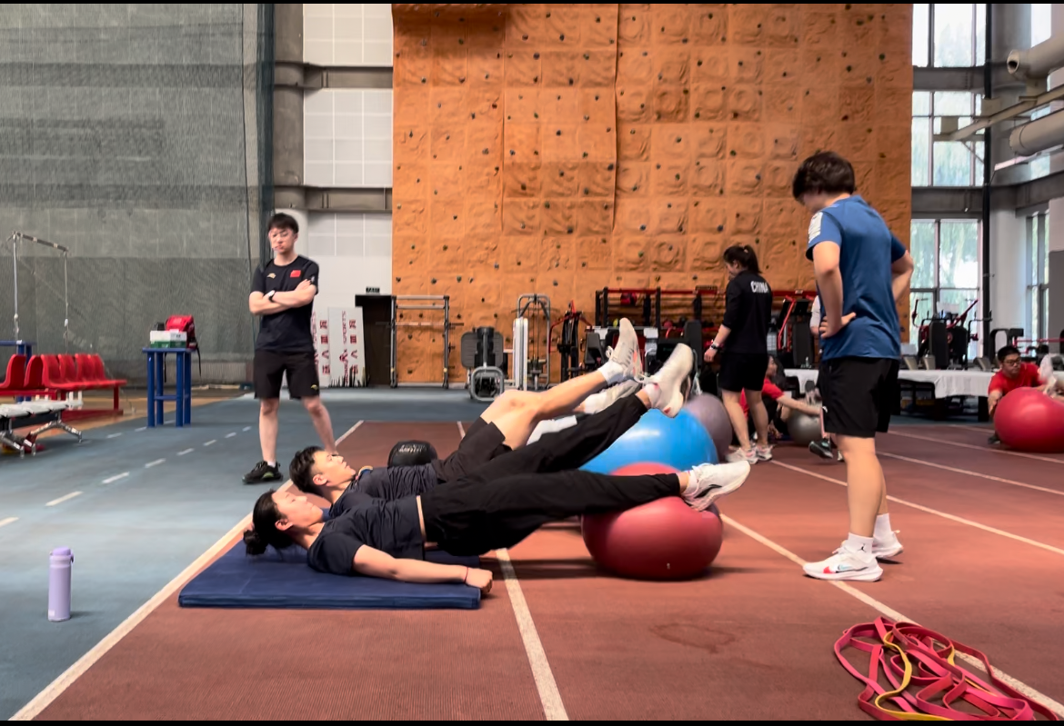 在北京体育大学田径馆中,雪橇运动员们跪在瑜伽球上,四人一组互相抛接小实心球。“通过这种相对轻松又有趣味的方式来锻炼运动员的核心力量。”在场边的队管理吴荣钊对记者说。自5月雪橇国家集训队集结开启新赛季训练以来,经过第一阶段为期一个月左右的恢复调整,队伍已步入夏训第二阶段基础力量准备期的训练。“通过第一阶段测试结果,目前运动员们已基本恢复到上赛季结束时的体能水平。”教练阚樾说。