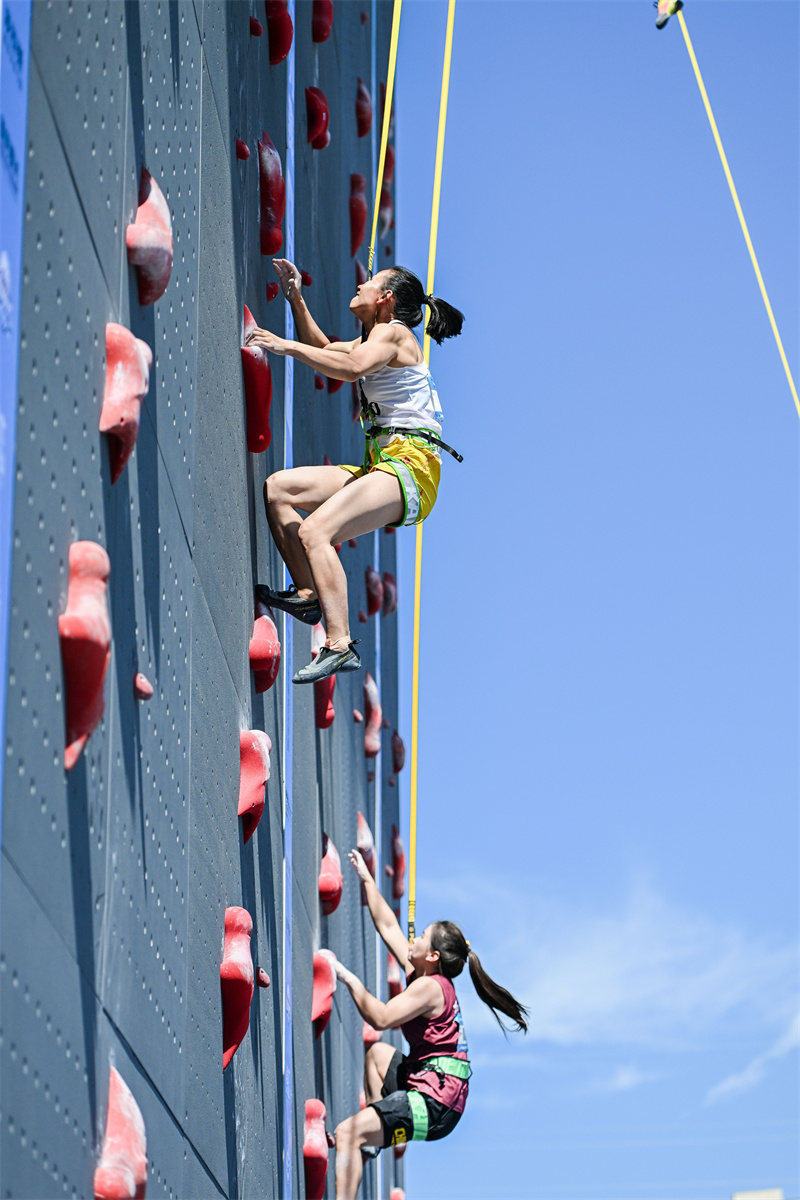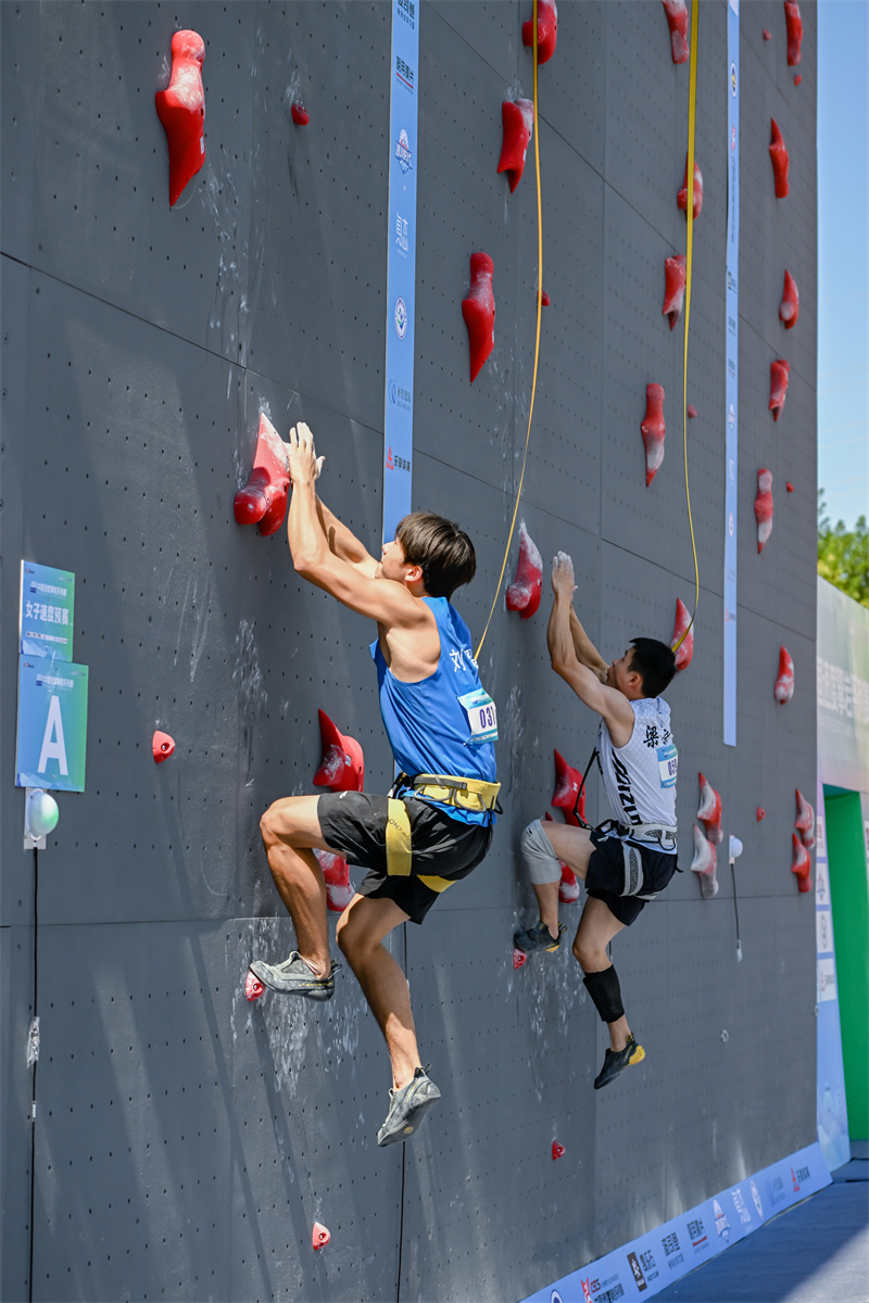 据中国登山协会消息,“攀无止境,共创未来”2023中国速度攀岩系列赛首站(山东齐河站)日前在齐河永锋实验学校攀岩场举行。来自14个省区市的近百名攀岩精英相聚齐河,上演岩壁上的“速度与激情”。
