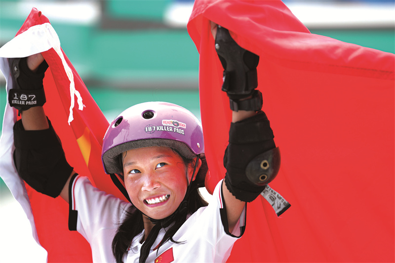 9月25日,亚运会滑板男子碗池比赛中,15岁的陈烨在习练滑板7年之后,登上了亚运会最高领奖台,这次伴随他“飞”的不只有滑板,还有肩上飞扬的五星红旗。“夺冠的心情很兴奋,代表中国夺冠的心情更兴奋,原来为国争光是这样的感觉。”赛后陈烨激动地说。