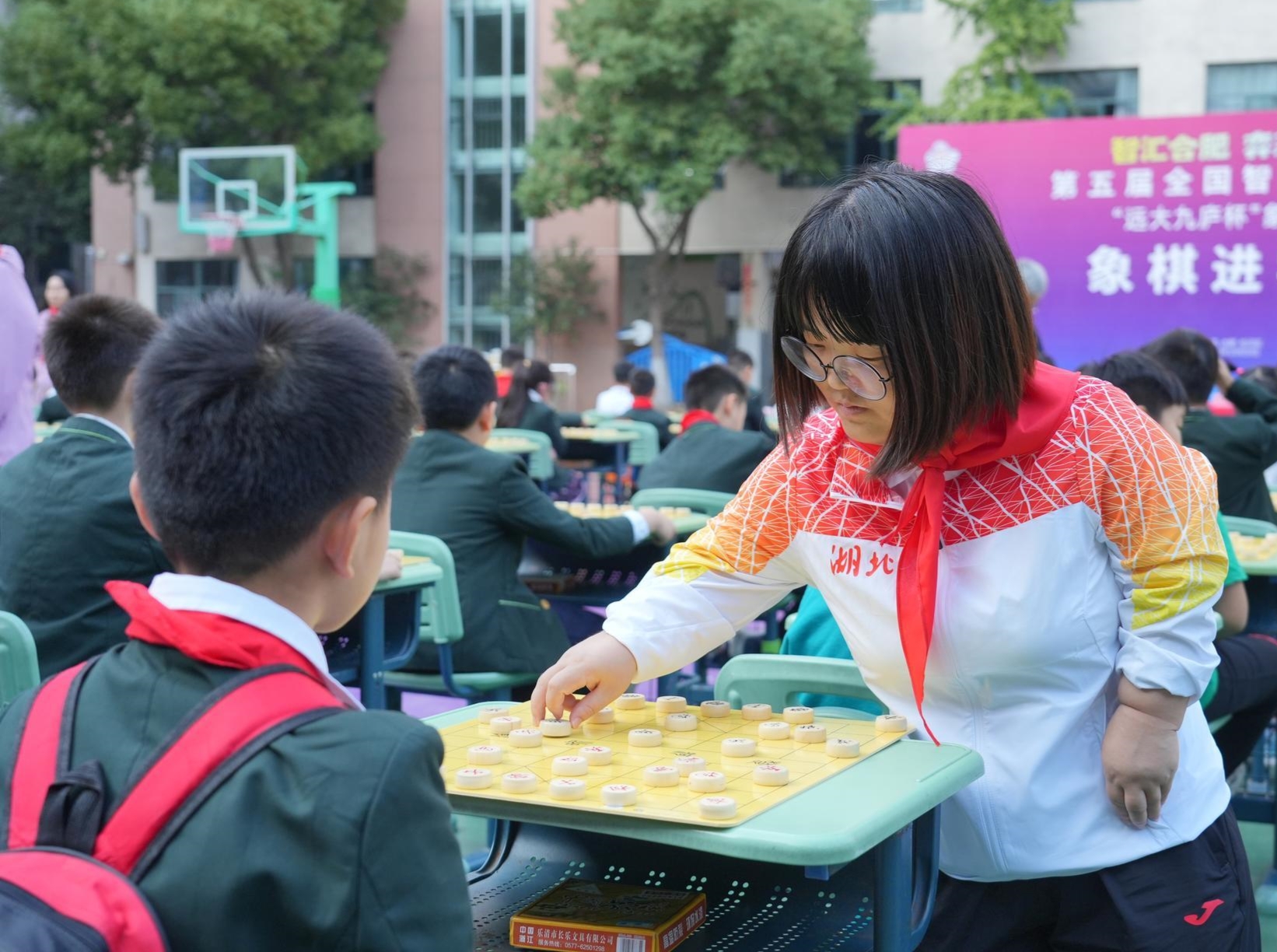 10月29日下午,刚刚获得五智会象棋专业女子个人冠军的左文静来到合肥市青年路小学,学校操场上整整齐齐地摆放了100盘象棋,100名学生端坐在棋盘的一端,迎战10位智运会参赛选手,五智会包河赛区“象棋进学校”百人象棋车轮战在这里举行。中国象棋协会副主席陈大清给青年路小学带来了象棋教材,五智会象棋仲裁周晓朴为孩子们进行了象棋知识讲解。10位参加车轮战的象棋名将都是刚刚获得五智会象棋专业女子个人、青年女子个人前六名的棋手,其中左文静和王琳娜都是杭州亚运会冠军。