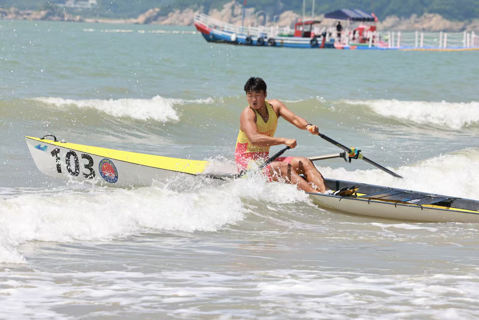 6月29日,在舟山市朱家尖南沙景区,全国海岸赛艇沙滩冲刺锦标赛,暨第十五届全国运动会海岸赛艇沙滩冲刺项目资格赛顺利完赛。