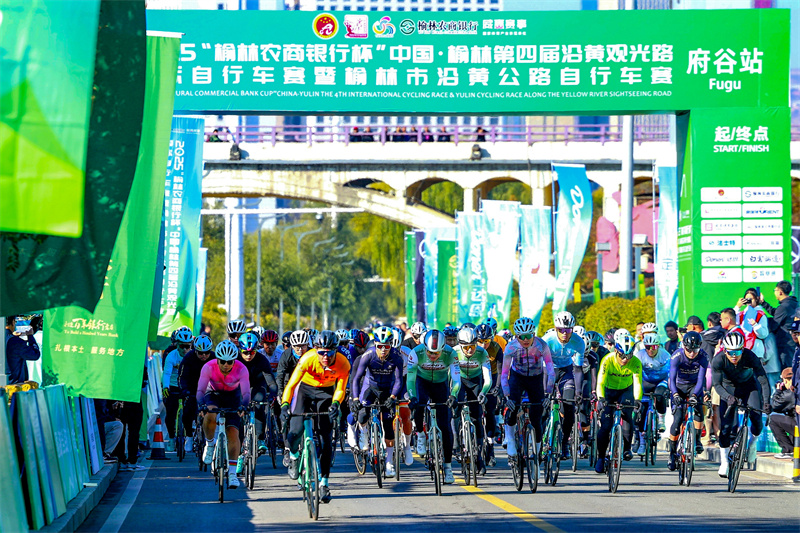 黄河岸畔,车轮飞驰。11月1日,2025“榆林农商银行杯”中国·榆林第四届沿黄观光路国际自行车赛在陕西省榆林市府谷县开赛。来自国内外的20支专业车队、120余名职业选手与300余名骑行爱好者,在风景秀丽的沿黄观光路上展开角逐。