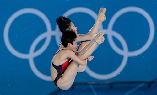 7月31日,伦敦奥运会女子10米跳台跳水决赛在伦敦奥林匹克水上中心展开。中国组合陈若琳(下图左)/汪皓获得金牌,总成绩为368.40分。