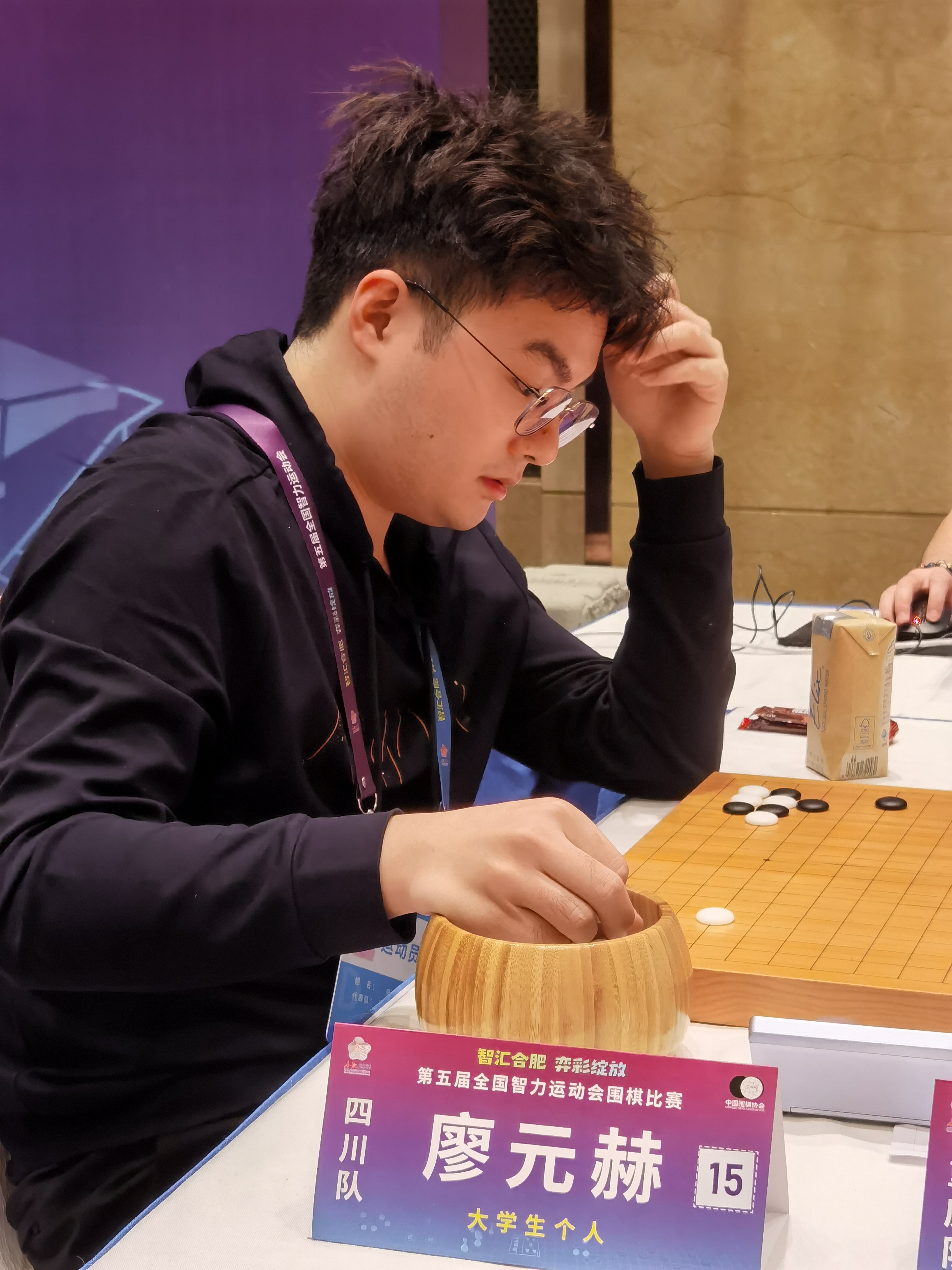 第五届全国智力运动会围棋项目的第三枚金牌于10月28日下午在合肥产生。在大学生个人赛中,四川队廖元赫以8胜1负积16分的战绩夺得冠军。