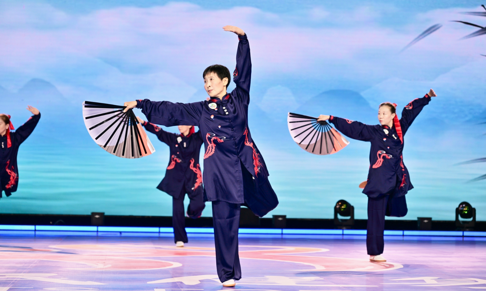 山东三队演绎的《武风扇韵》令人眼前一亮,从动作设计到音乐选择全部由队长王幼丽操刀。她介绍,虽然节目的整体呈现以太极扇为主,但是融入长拳、醉拳、螳螂拳等武术招式,集观赏、健身、娱乐于一体。此前,这支由济宁市老体协健身骨干组成的队伍曾在全国健身气功·气舞项目展演中屡获一等奖。此番参加交流展示大会,她们选用了难度更高的作品,当顺利完成全部套路时,几位老姐妹相视一笑。