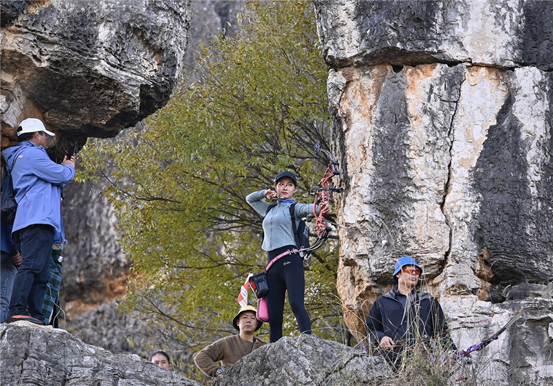 12月14日,在冬日昆明暖融融的阳光下,2019中国·昆明石林全国原野射箭公开赛拉开序幕。来自全国33支队伍的157名选手齐聚乃古石林,一决高下。