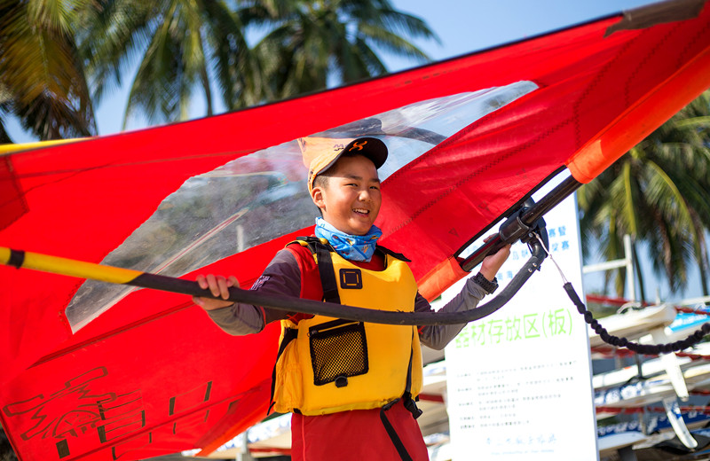 来自海淀外国语海南校区双优运动学院的陈梅子鹤,今年只有12岁。虽然只接受了两个月的正式训练,但他还是鼓起勇气前来参赛。“我这次来比赛主要是看一下外面的世界有多大,多向优秀的同学学习。通过练习帆板,增强了我的协调能力,也磨练了我的意志品质。”在当天比赛结束后,陈梅子鹤对自己的发挥感到并不满意,但他还是愿意继续参赛,让自己增长更多见识。海淀外国语学校海南校区双优运动学院一直秉承“没有体育教育就没有活力,没有教育体育就没有灵魂”的双优教育理念,通过运动平台培养学生的优秀品质,使其身心全面发展。