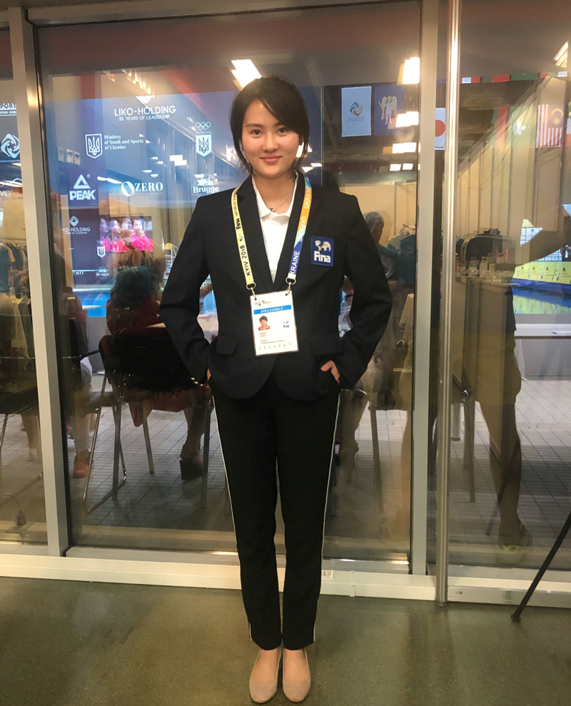 与一年前初次担任裁判长时的紧张不同,今年再战“水立方”,陈若琳已经驾轻就熟,“第一场比赛上来就蛮上手了,后面也越来越适应。”这源于一年间她参与了青奥会、世界杯、世青赛等大赛的执裁工作,积累了丰富的经验。其中让陈若琳印象最为深刻也最具挑战的便是阿根廷青奥会,“因为青年比赛相比成年比赛的规则更复杂一些,对我来说是一种挑战,但自己完成得还不错。”