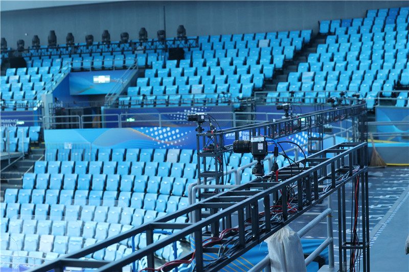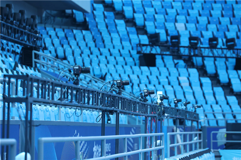 全景视角、VR技术得益于场馆内布设的40台4k摄像机阵列和3台8KVR相机。“观众可体验到360度自由交互观赛,并可进行视角切换。”李玮介绍说,通过该技术,观众便可通过手机、平板电脑登录小程序实现比赛直播,并可任意拖动画面,找到理想观赛角度。