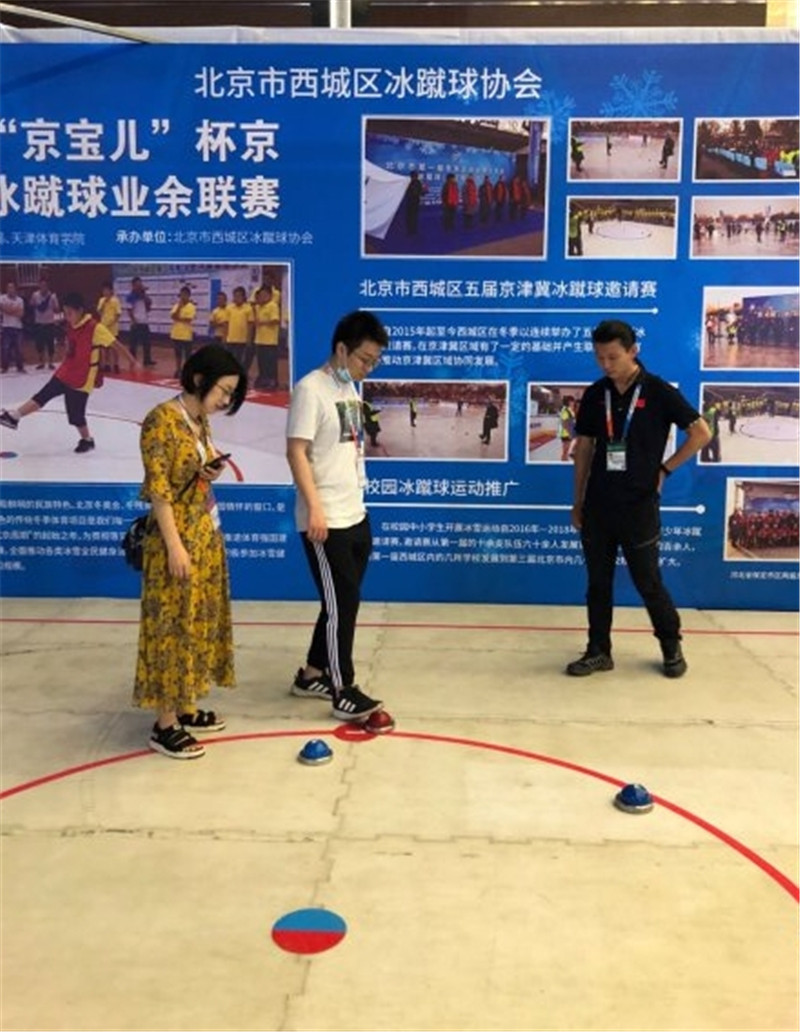 2019年体服会展览展示区域位于国家会议中心的四层展厅,与往届相比展览面积显著扩大,共有来自11个国家近百家优秀体育服务贸易企业参展。组委会特别设立的冰雪运动展区,全方面展示了中国冰雪运动近年来取得的进步,积极促进国内外冰雪产业的合作共赢。展区中,老北京传统民族冰雪体育项目冰蹴球首次亮相,展会现场搭建了一块由仿真冰组成的迷你冰蹴球场地,吸引了不少参展群众前来体验。据现场冰蹴球展位工作人员介绍,冰蹴球来源于什刹海冰上蹴鞠游戏,已被列为北京市西城区非物质文化遗产,如今冰蹴球比赛已经成为冬季冰上传统运动的主打项目,比赛规模逐年扩大,京津冀冰蹴球邀请赛已经连续举办了五届。冬季运动强国芬兰也在本届体服会上组团参与了展示,在芬兰特色体育展区中,高山定向越野赛、冰上龙舟赛事、滑雪培训等优质项目纷纷亮相,成为中芬冰雪运动交流与合作的窗口。