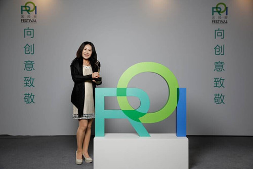 李宁集团副总裁兼李宁品牌首席市场官邓晓华领取金投赏金奖奖杯