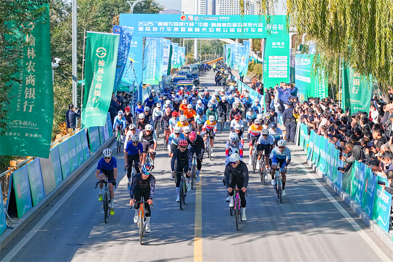 黄河岸畔,车轮飞驰。11月1日,2025“榆林农商银行杯”中国·榆林第四届沿黄观光路国际自行车赛在陕西省榆林市府谷县开赛。来自国内外的20支专业车队、120余名职业选手与300余名骑行爱好者,在风景秀丽的沿黄观光路上展开角逐。