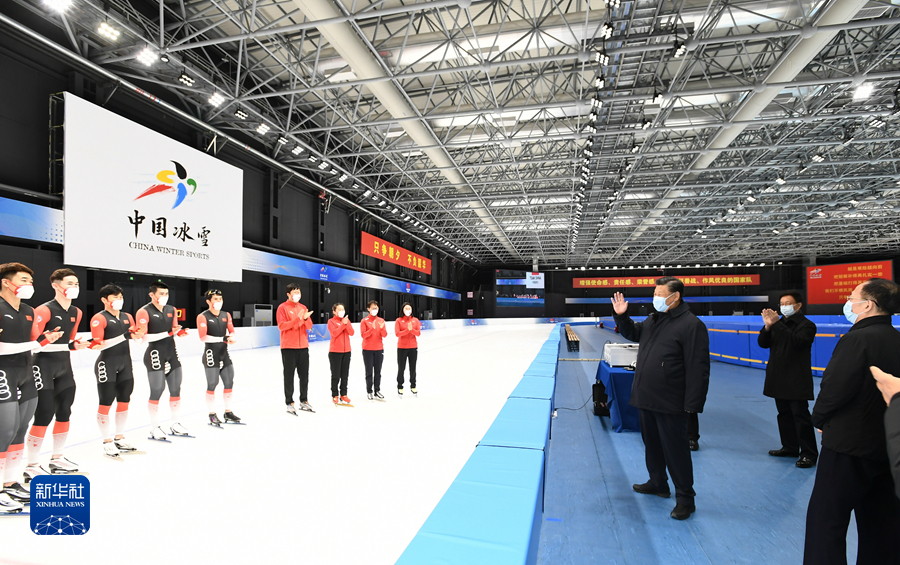 中国速度滑冰国家队前不久结束世界杯的征程,进驻这里进行冬奥会最后阶段的备战。团体追逐项目的运动员在冰面上如飞鸟般驰翔,习近平总书记专注观赛。